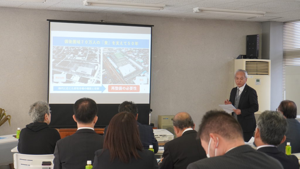 市場再整備については、温度管理の改善やコールドチェーンの強化など、新しい発想を取り入れた施設づくりに向けた方針を進めていること説明しました。